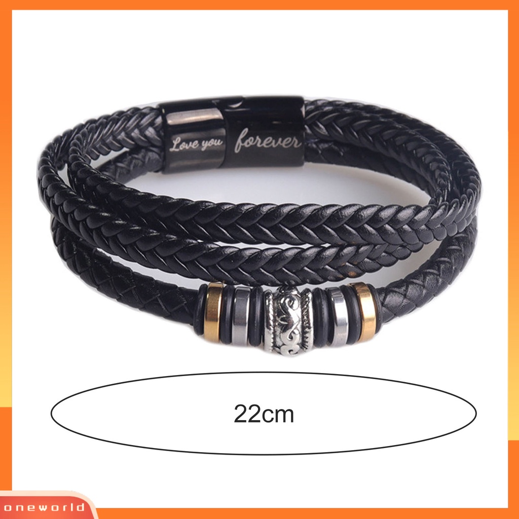 Aksesoris Fashion > Gelang Tangan & Bangle > [EONE] Pria Gelang Adjustable Fashion Aksesoris Handmade Love You Forever Print Faux Leather Tiga Lapis Braided Bracelet Untuk Pakaian Sehari-Hari