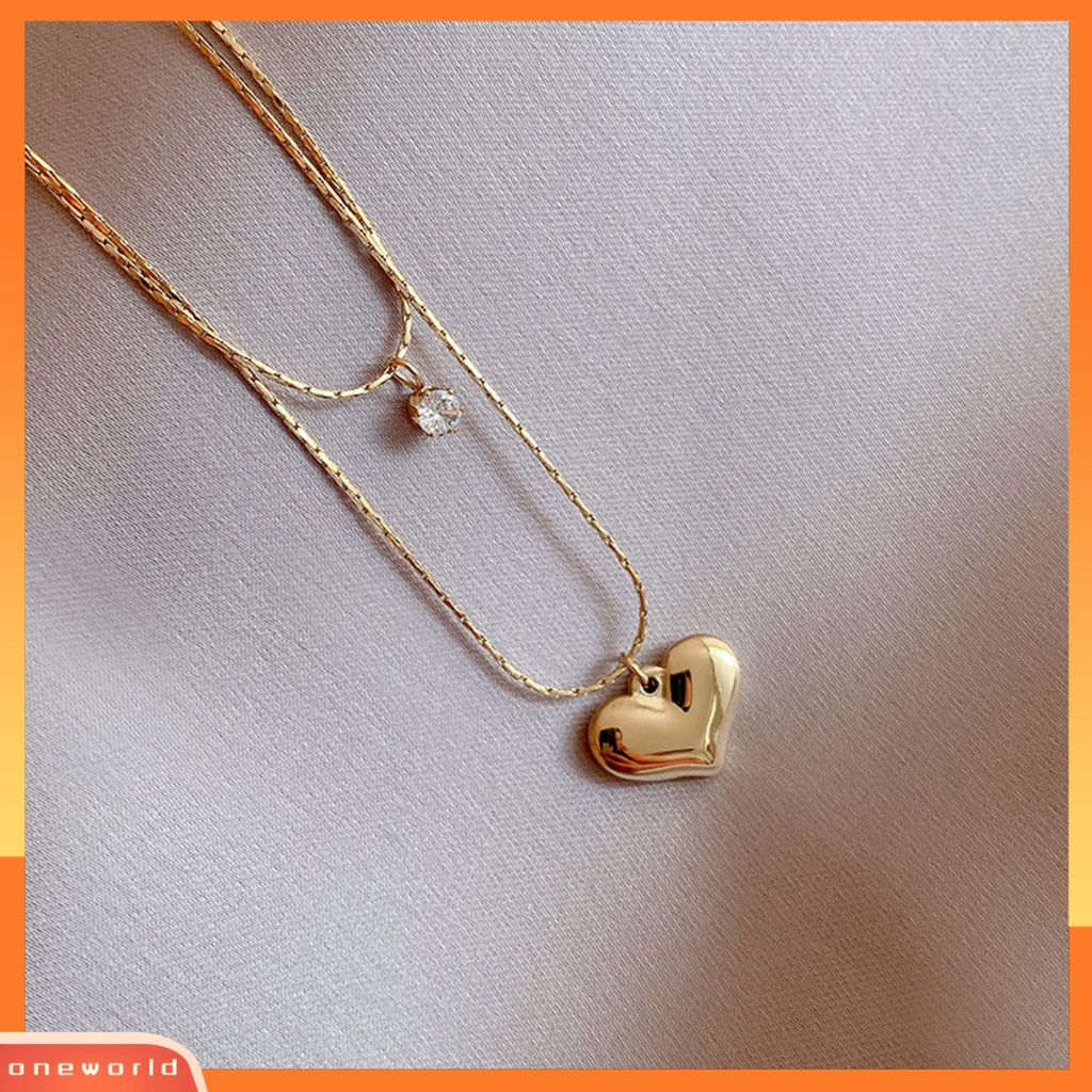 [EONE] Rantai Klavikula Lapisan Ganda Kilau Terang Mengkilap Berlian Imitasi Poles Adjustable Dekorasi Hadiah Wanita Gadis Cinta Hati Liontin Kalung Perhiasan Untuk Pakaian Sehari-Hari