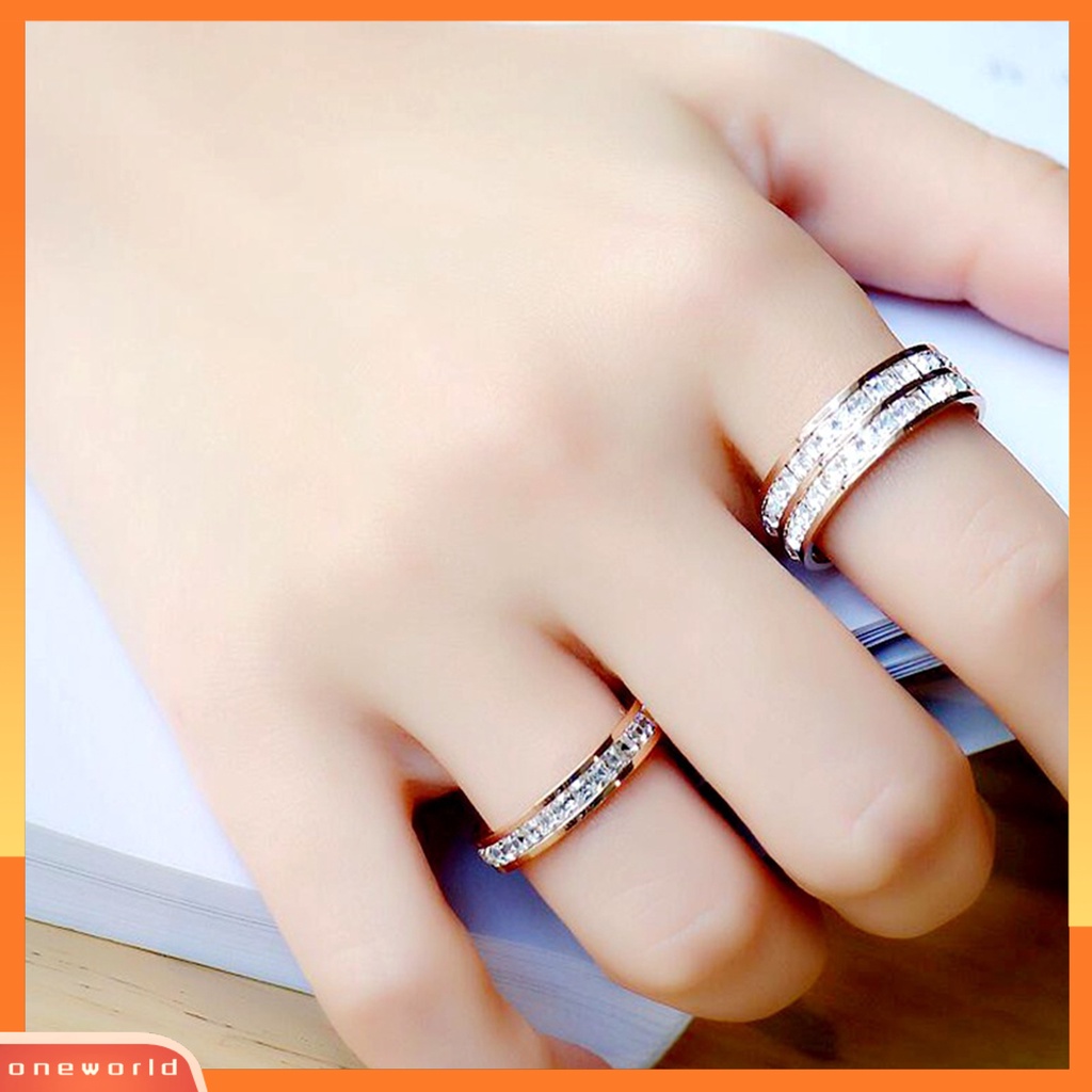 Detail [EONE] Wanita Cincin 2-layers Minimalis Dipoles Mungil Hadiah Mewah Emas Warna Perak Berkilau Berlian Imitasi Dewasa Jari Cincin Perhiasan Fashion