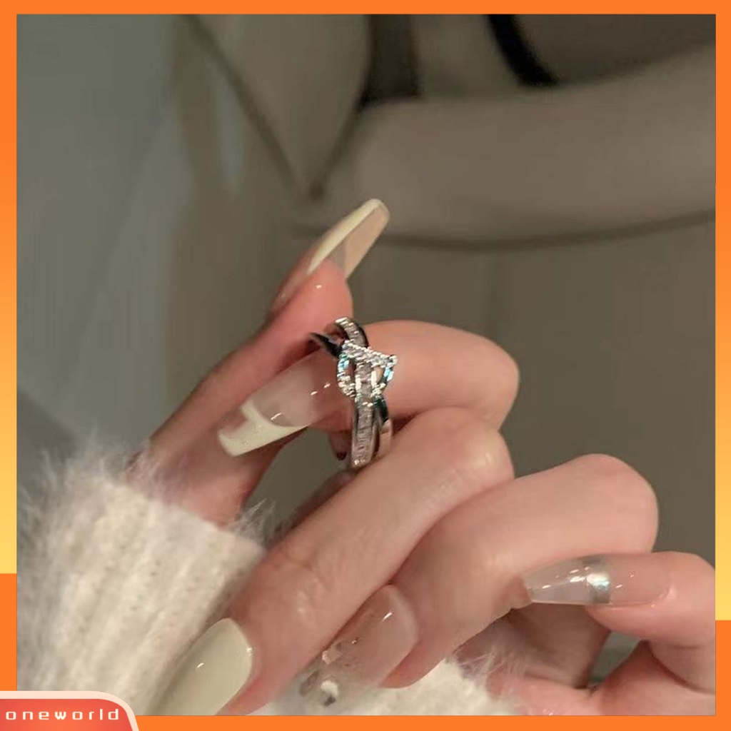[EONE] Wanita Cincin Double-layers D Huruf Berongga Pembukaan Kepribadian Warna Perak Berlian Imitasi Berkilau Cincin Jari Fashion Perhiasan