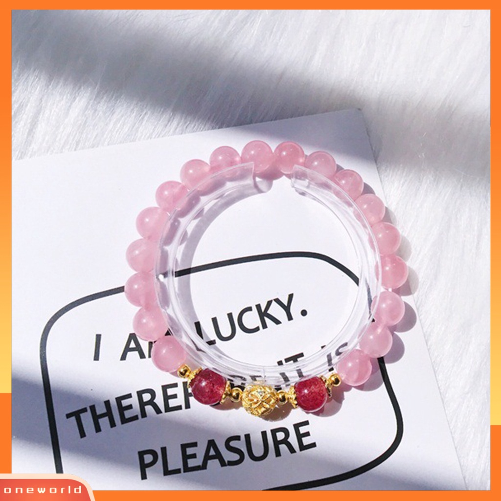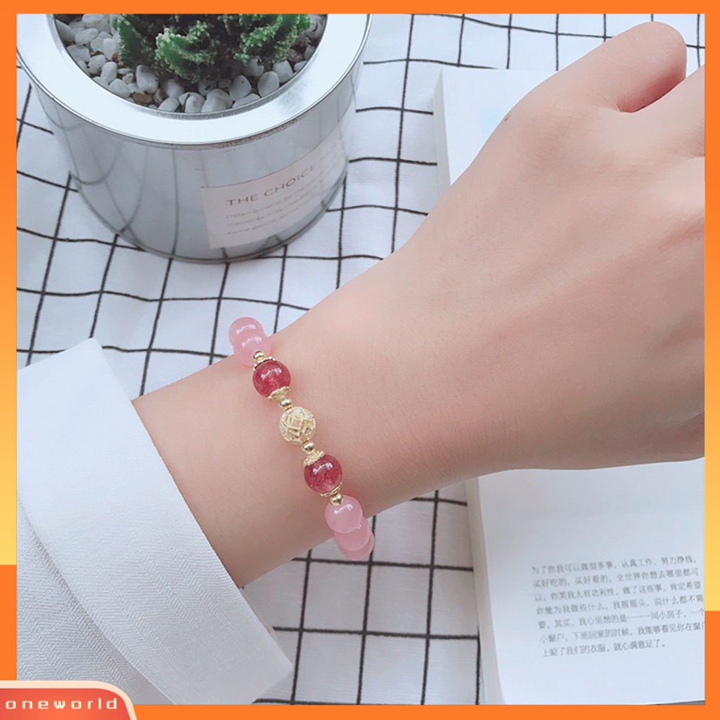 [EONE] Wanita Gelang Shiny Hias Menarik All-match Anti Luntur Perhiasan Hadiah Batu Alam Pink Strawberry Kristal Imitasi Wanita Pesona Gelang Untuk Pacar