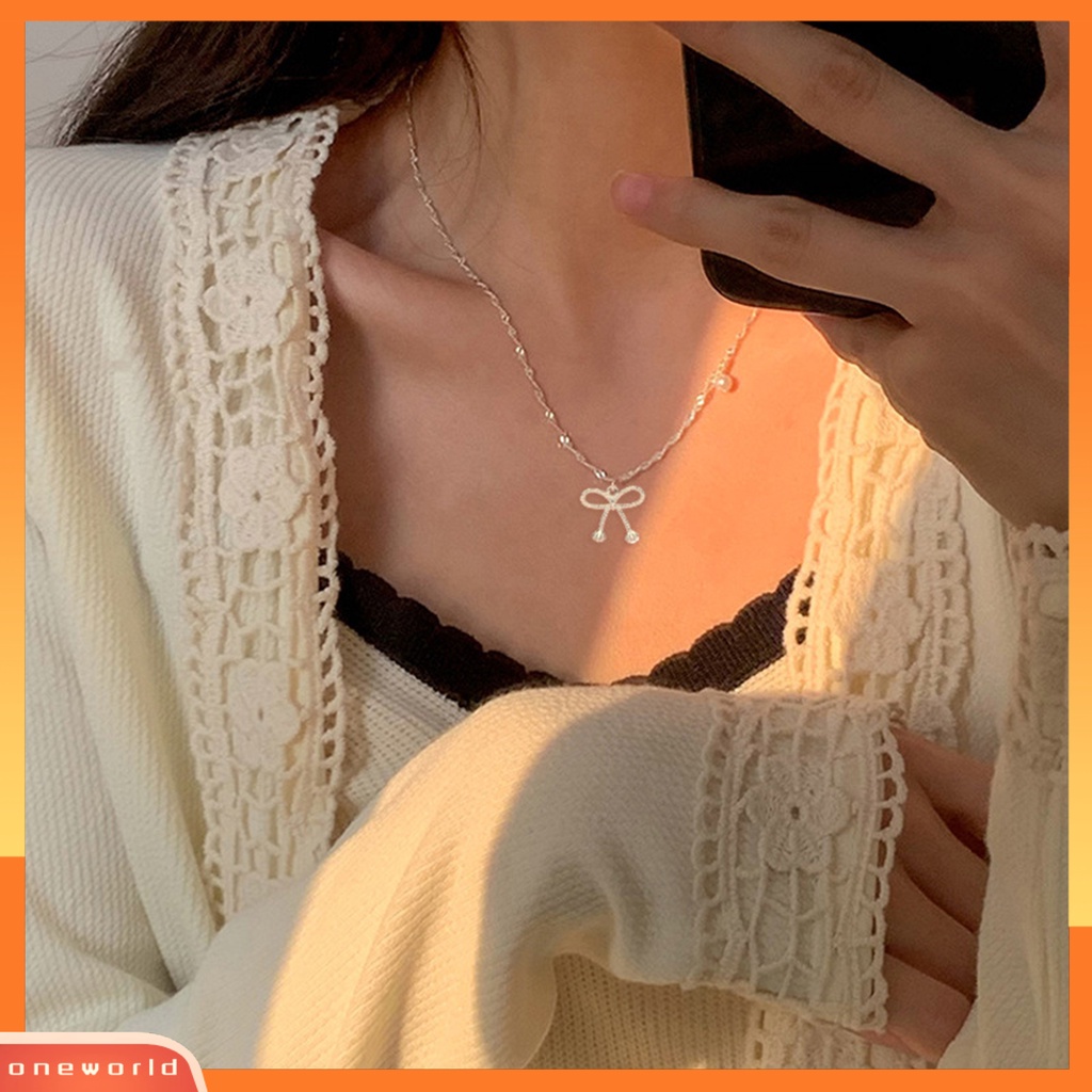 Liontin bentuk mutiara imitasi dan busur, kalung ini memberikan tampilan yang berkilau, elegan, dan tinggi yang membuat Anda bersinar saat makan malam, pesta, dan prom.