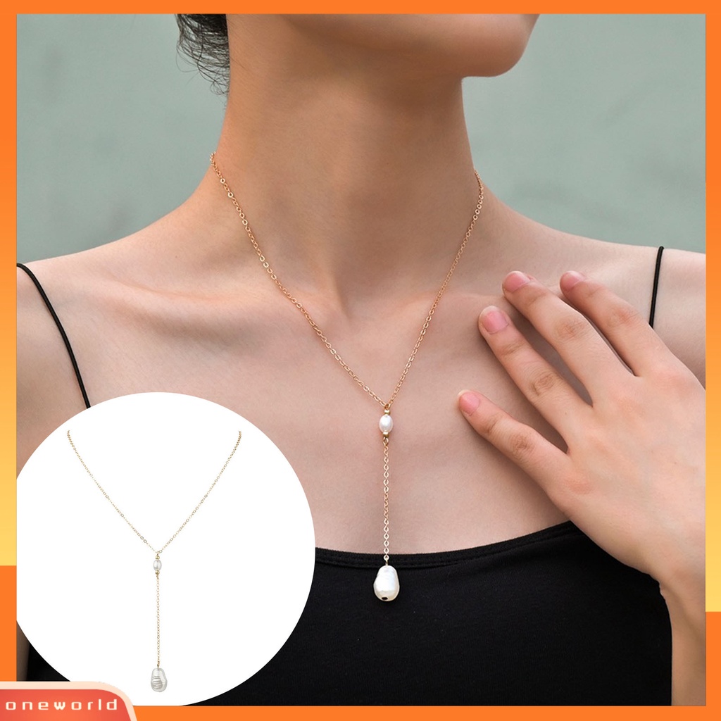 Detail [EONE] Wanita Kalung Elegan Minimalis Dapat Disesuaikan Panjang Berkilau Rantai Mutiara Imitasi Liontin Kalung Fashion Perhiasan