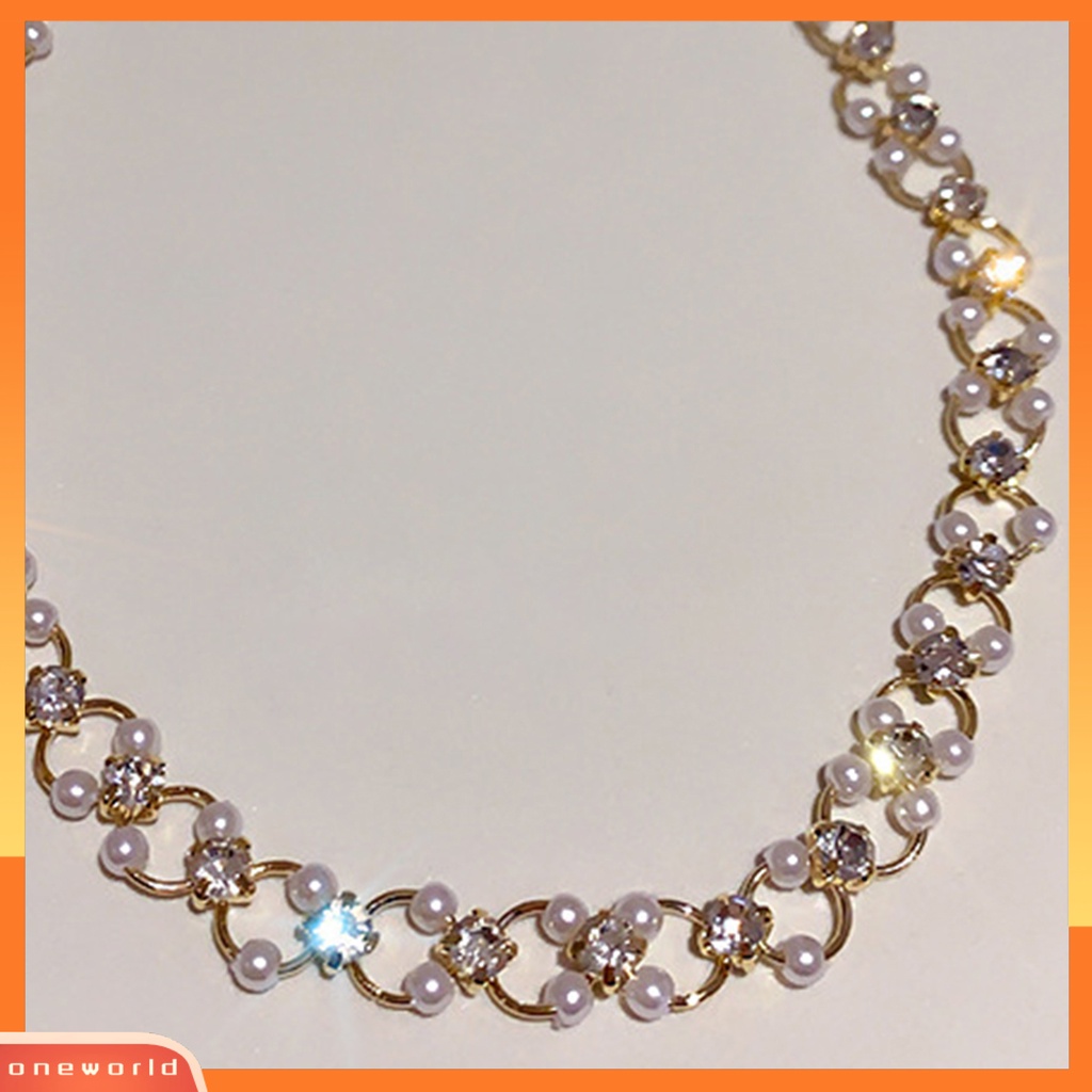 Detail [EONE] Wanita Kalung Lingkaran Mutiara Imitasi Perhiasan Berlian Imitasi Bersinar Kalung Choker Untuk Pesta Perjamuan Pernikahan Prom