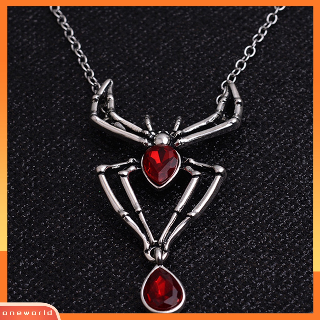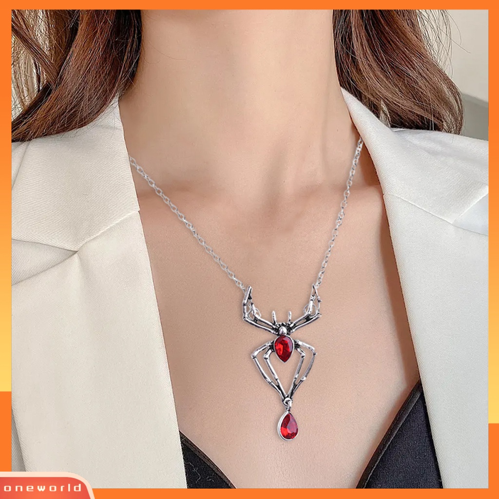 [EONE] Wanita Kalung Vintage Pengerjaan Yang Baik Tahan Lama Cosplay Portabel Mewah Mengerikan Bentuk Laba-Laba Merah Berlian Imitasi Halloween Kalung Hadiah