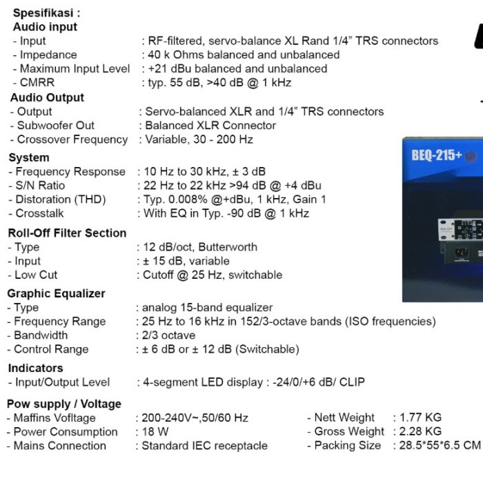 Detail Equalizer betavo BEQ-215+