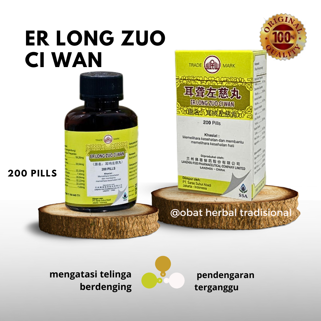 Er Long Zuo Ci Wan atau Er Ming Zuo Ci Wan merupakan herbal tradisional yang diformulasikan secara khusus untuk mengatasi telinga berdenging (tinnitus) dan pendengaran terganggu (tuli). Obat ini bekerja dengan memperkuat fungsi ginjal dan menormalkan fungsi hati. Er Long Zou Ci Wan biasa digunakan untuk mengobati telinga berdenging dan gangguan pendengaran (tuli) akibat fungsi ginjal terganggu.