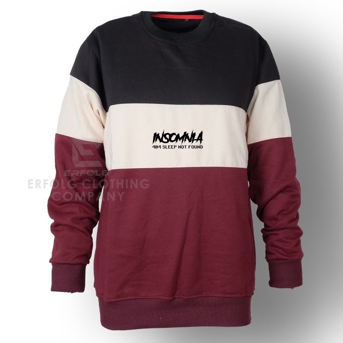 Erfolg Offiziell Sweater Crewneck Pria Wanita Kombinasi Switer Cowok Cewek Sweatshirt Premium Distro Bandung Switer Oblong Brand Lokal Basic Sablon Insomnia Bahan Fleece Tebal Ukuran M L XL Suiter Combinasi 3 Varian Aplikasi Aesthetic