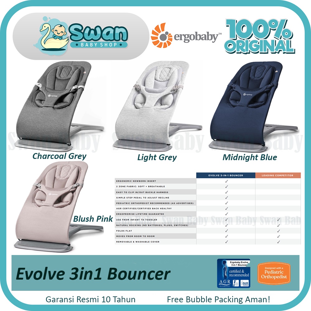 Your browser does not support the video tag.Video perkenalan produk Ergobaby Evolve 3 in 1 Bouncer. Sumber: Shopee.