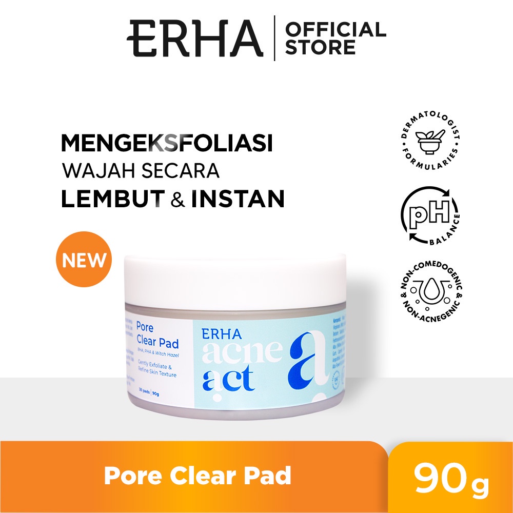 Erha Acneact Pore Clear Pad adalah kapas bertekstur dengan formula pH balance memiliki fungsi eksfoliasi secara lembut dan instan pada kulit.