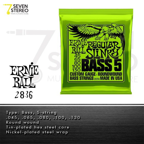 Specifications : - Go for the original with the slinky feel and the fat tone. - Ernie Ball 2836 Regular Slinky Strings for 5-string bass offers the popular round-wound strings that deliver maximum clarity and serious punch. - The list of endorsers for Ernie Ball Slinky bass strings reads like a who's who of modern rock bass. - Ernie Ball is the pioneer of rock and roll guitar strings. Jimmy Page, Eric Clapton, Steve Vai, and Slash are among the long list of Slinky players. - Specially formulated alloys for long life and maximum vibrancy. - Gauges: 45-65-80-100-130.