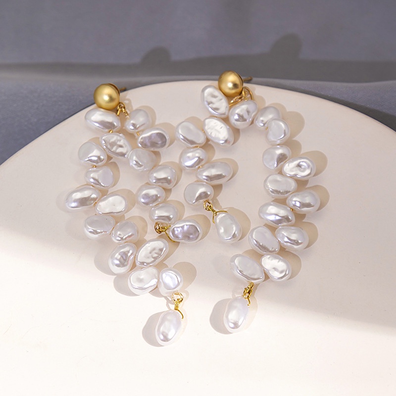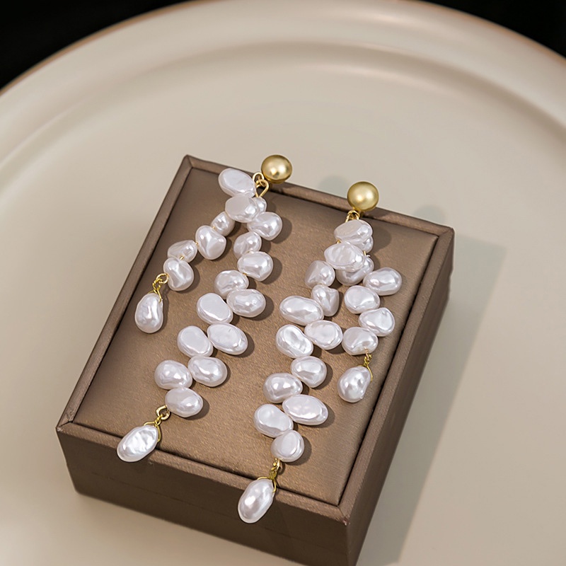Detail Eropa Amerika Unik Fashion Retro Temperamen Heteroseksual Mutiara Anting Rumbai Panjang