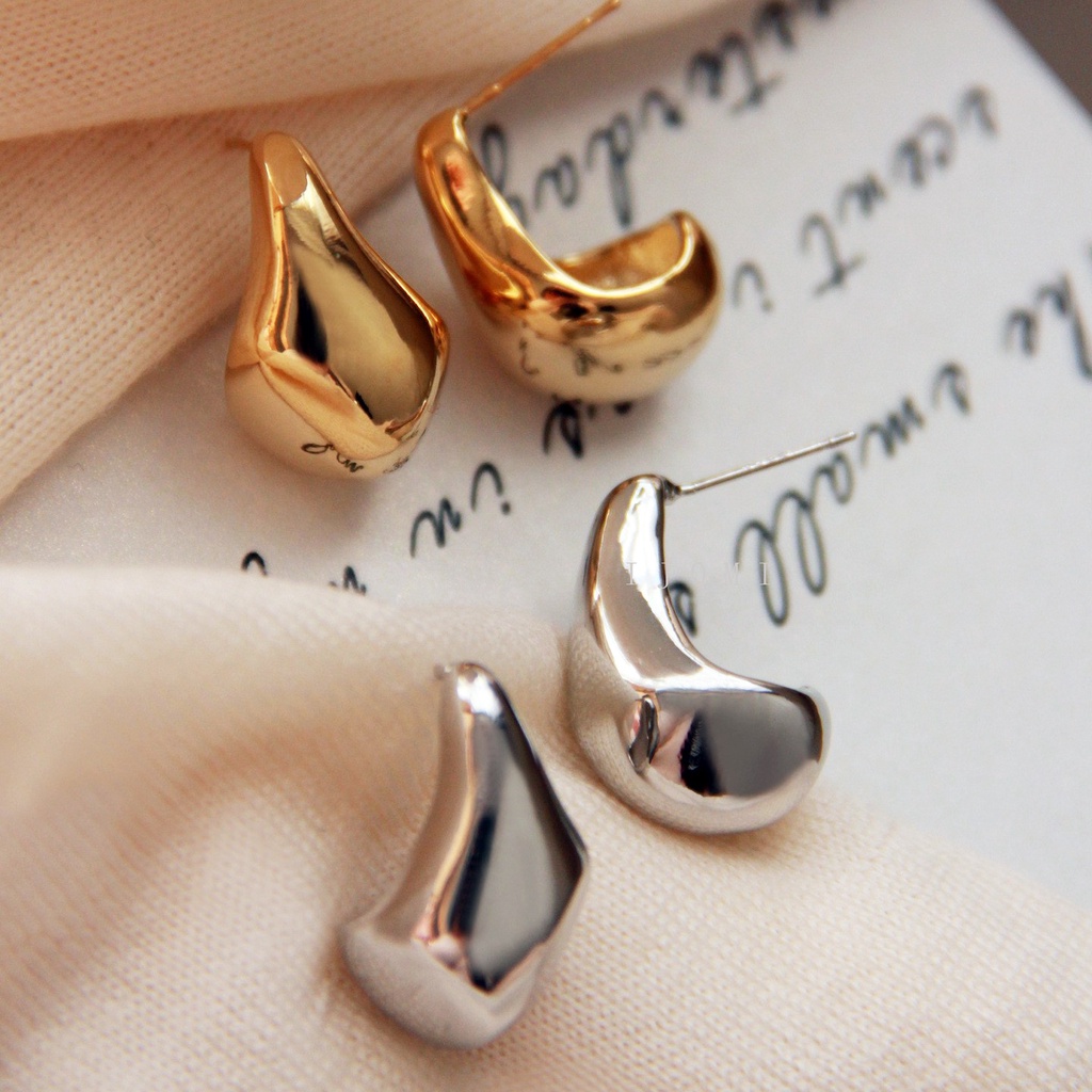 Aksesoris Fashion > Anting > Eropa Dan Amerika Berlapis 18 K Logam Kacang Kuku Anting-Anting S925 Perak Jarum Temperamen Sederhana Geometris Anting-Anting