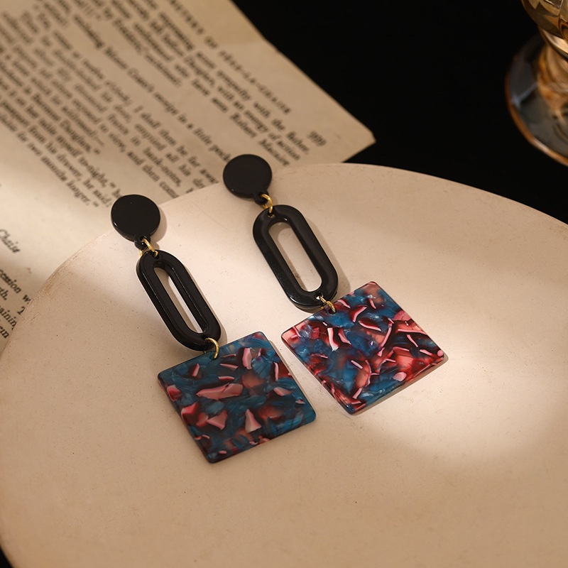 Detail Eropa dan Amerika gaya anting-anting geometris segiempat gaya etnik anting-anting perempuan selulosa