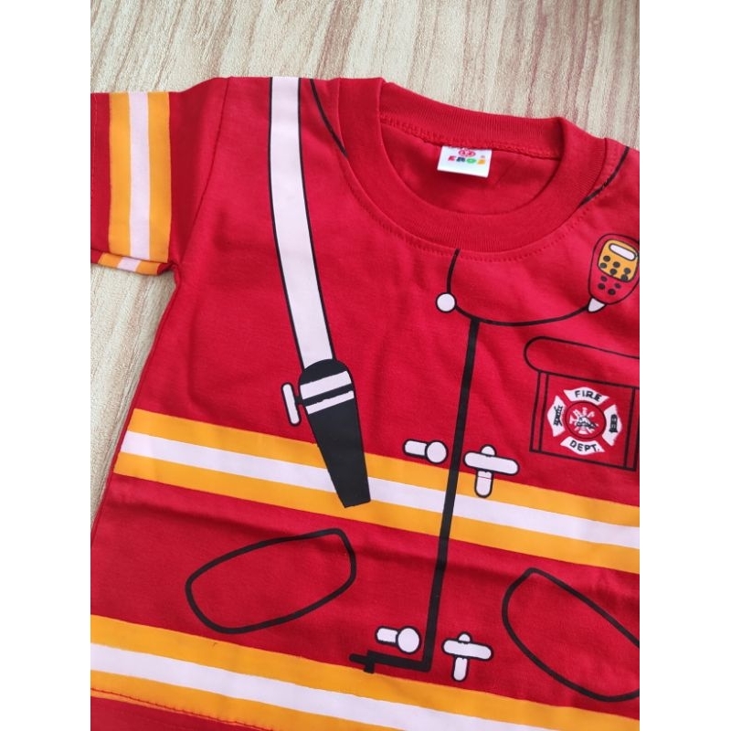 Detail EROS PEMADAM KEBAKARAN kostum setelan baju celana pendek anak bayi
