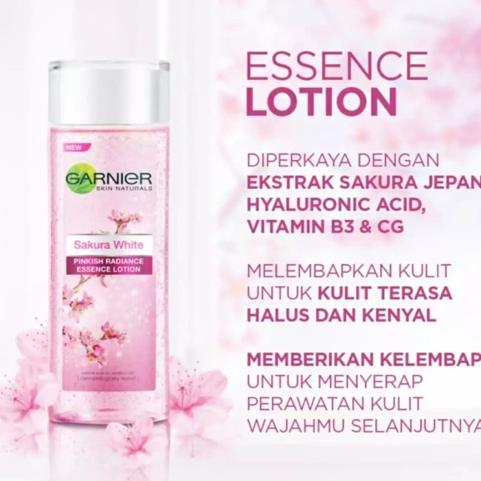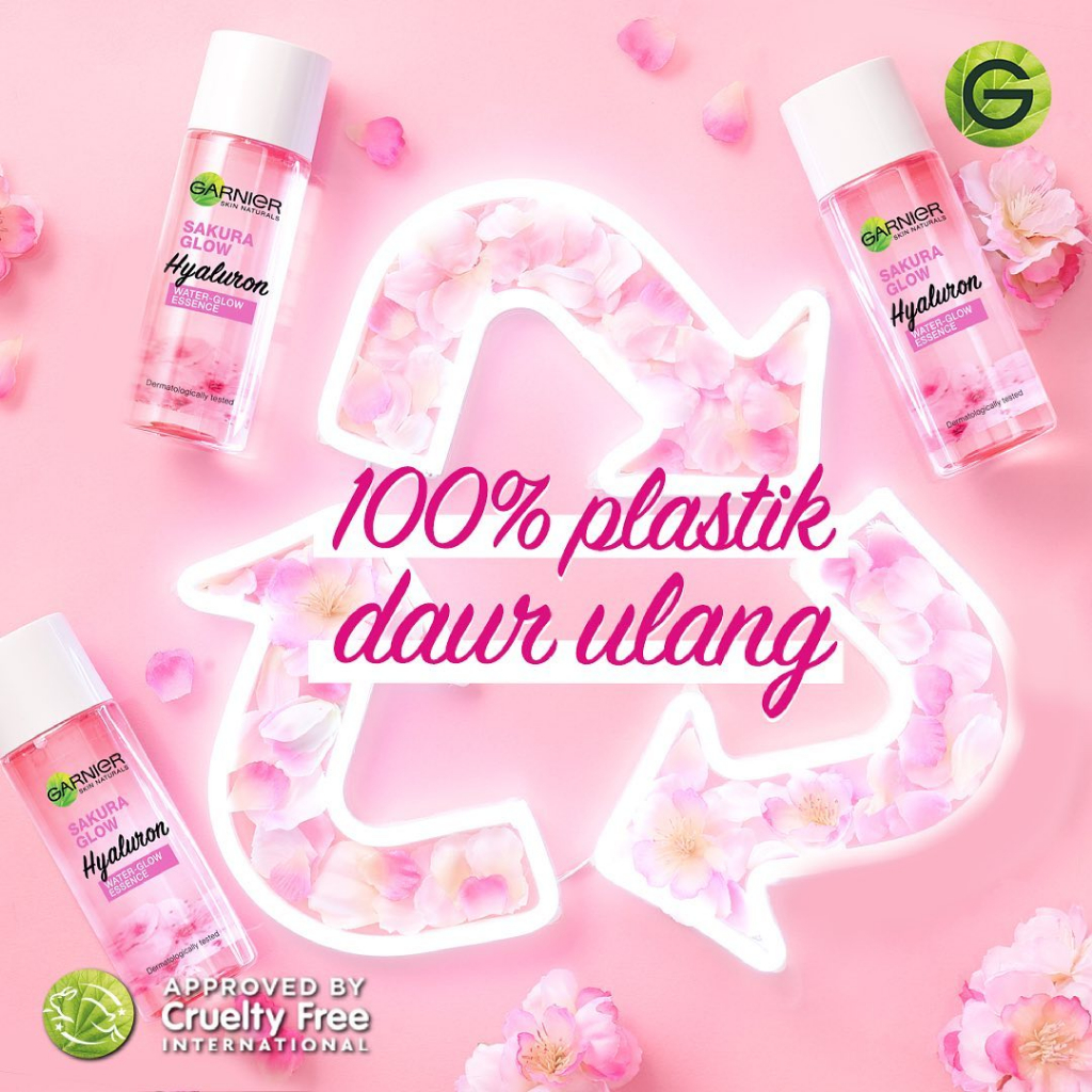 1. Sakura Glow Hyaluron Water-Glow Essence Hydrating essence dari Garnier untuk menutrisi dan menghidrasi kulit wajah. Diperkaya dengan ekstrak Sakura Jepang dan Hyaluron yang dipercaya dapat menjadikan kulit tampak cerah, halus, dan lembut. Formulanya ringan dan cepat meresap ke dalam kulit untuk melembapkan intensif, menjadikan kulit tampak cerah, halus dan glowing.