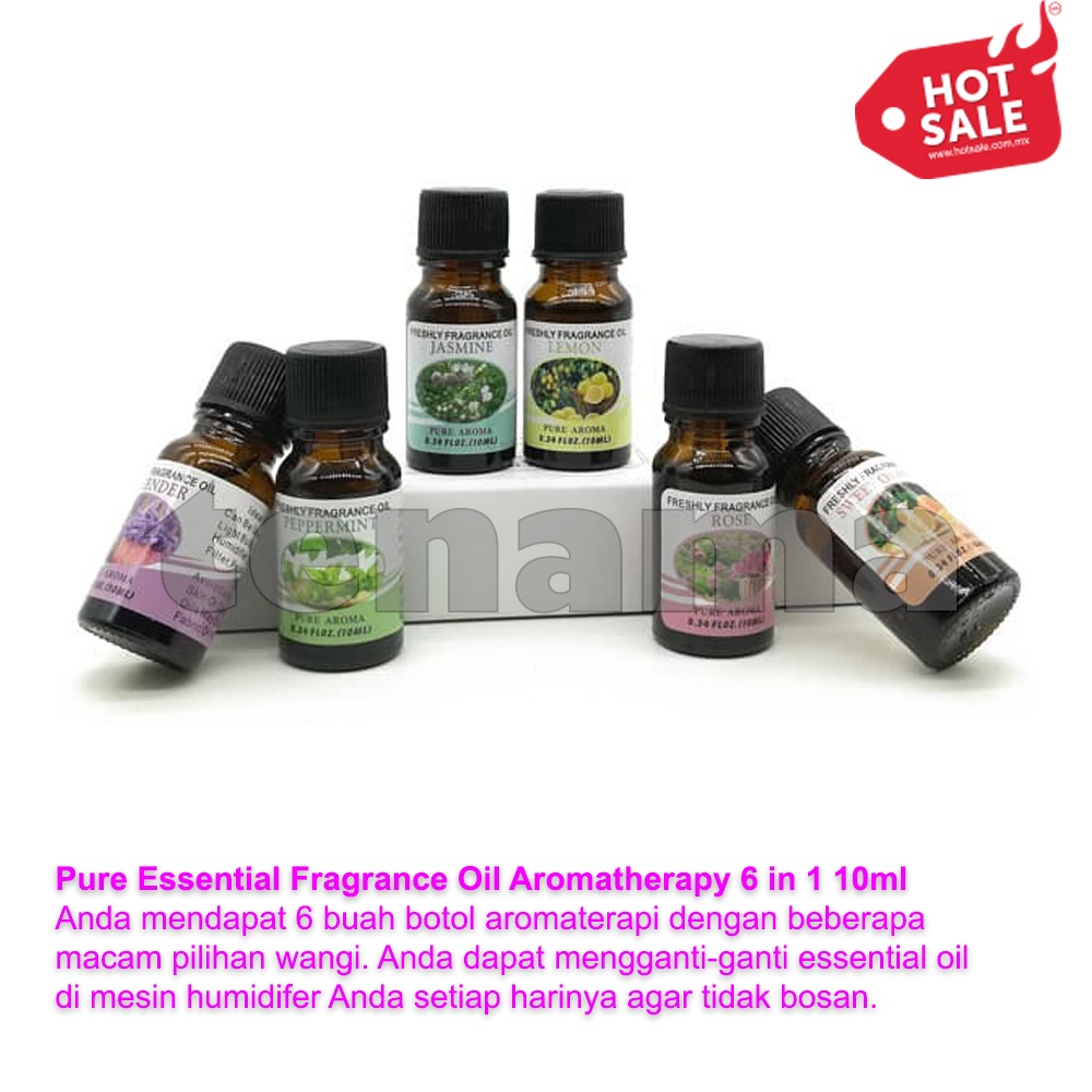 6 in 1 Aroma Anda mendapat 6 buah botol aromatherapy dengan beberapa macam pilihan wangi. Anda dapat mengganti-ganti essential oil di mesin humidifer Anda setiap harinya agar tidak bosan.