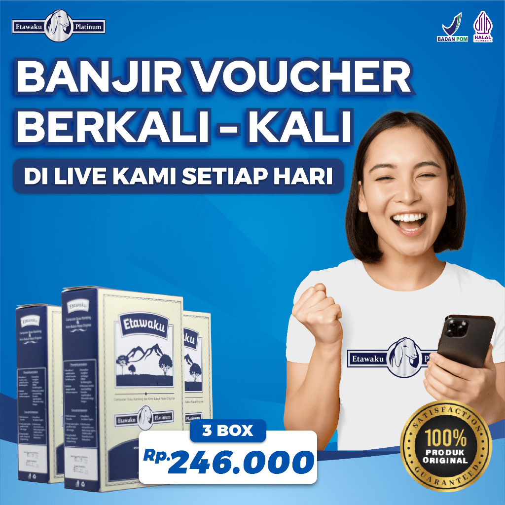 ๐—˜๐—ง๐—”๐—ช๐—”๐—ž๐—จ ๐—ฃ๐—Ÿ๐—”๐—ง๐—œ๐—ก๐—จ๐—  merupakan susu kambing etawa yang diproses dengan metode Modern Evaporasi Vakum suhu dingin dan diolah dengan Stainless Stell Food Grade SS304 (logam khusus untuk mengolah produk makanan) sehingga menjamin kemanfaatan Protein dan VItamin yang terkandung dalam susu tetap terjaga. ๐—˜๐—ง๐—”๐—ช๐—”๐—ž๐—จ ๐—ฃ๐—Ÿ๐—”๐—ง๐—œ๐—ก๐—จ๐—  dilengkapi krimer nabati minyak kepala yang rendah lemak. Karena dibuat dari 100% bahan alami, ๐—˜๐—ง๐—”๐—ช๐—”๐—ž๐—จ ๐—ฃ๐—Ÿ๐—”๐—ง๐—œ๐—ก๐—จ๐—  aman dikonsumsi semua kalangan ๐—ฑ๐—ถ ๐—ฎ๐˜๐—ฎ๐˜€ ๐Ÿญ ๐˜๐—ฎ๐—ต๐˜‚๐—ป dan aman dikonsumsi dalam waktu lama tanpa menimbulkan efek samping dan ketergantungan.