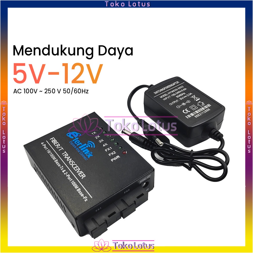 Komputer & Aksesoris > Komponen Network > Switch Internet & PoE > Ethernet Fiber Switch 4 RJ45 2 SC Optik Media Converter Single Mode Fiber Port 10/100M degan adaptor