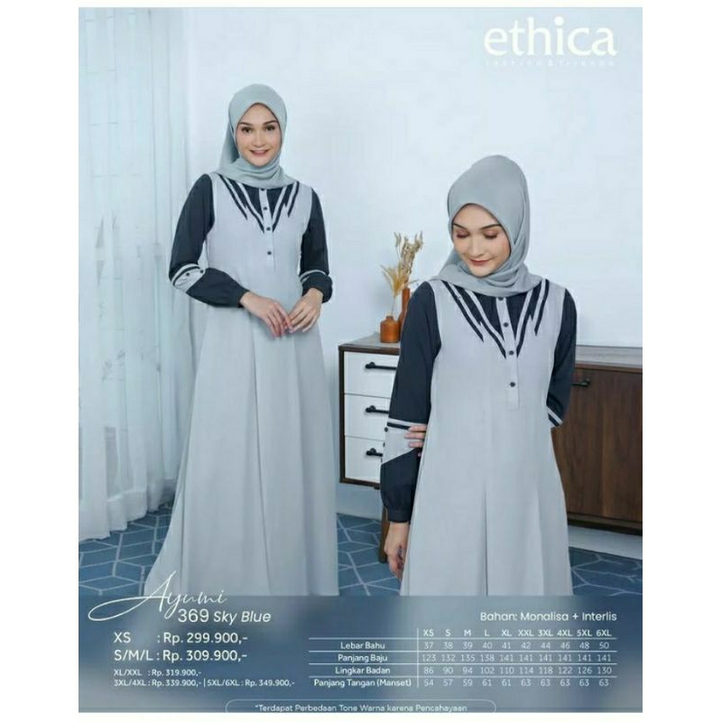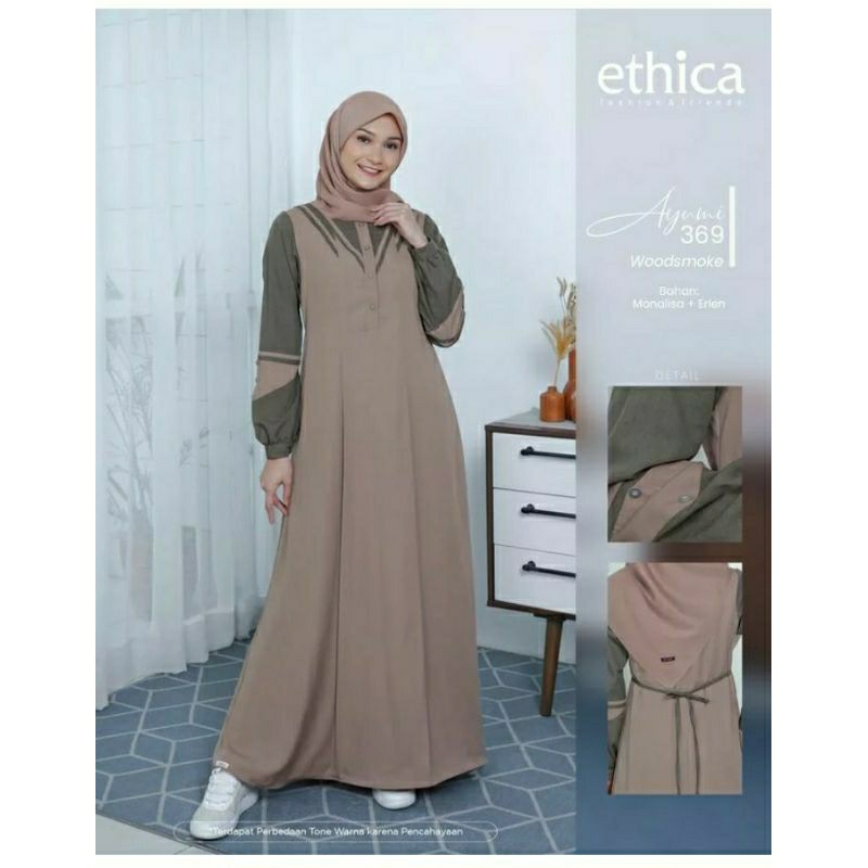 Detail Ethica Ayumi 369 Blue Sky Ethica Ayumi 369 Woodsmoke Baju Muslim Gamis Dress Premium Terbaru Ori Lebaran 2023