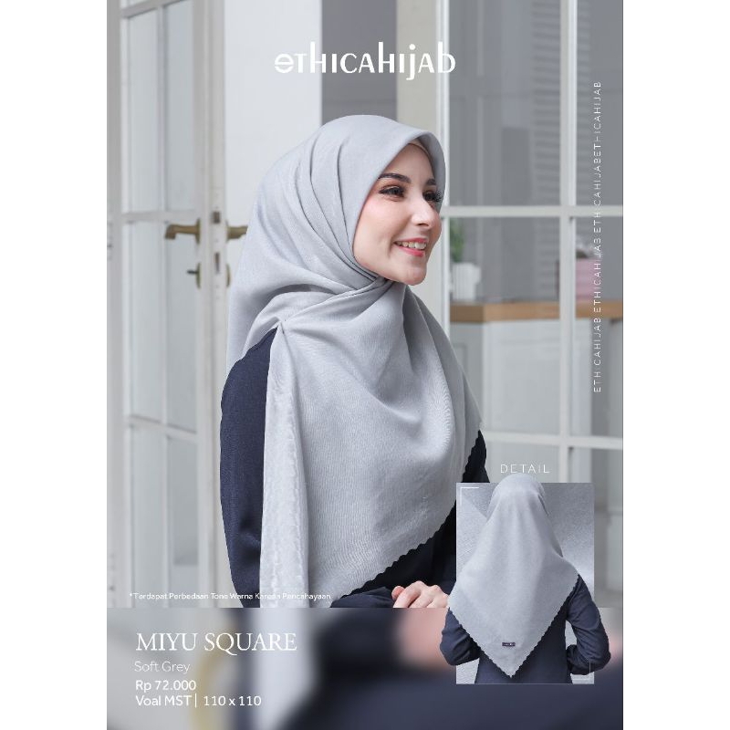 Ethica Hijab Kerudung Miyu Square (Dusty Pink, Grey, Maroon, Nude, Olive Green, Peach, Salmon, Soft Grey)