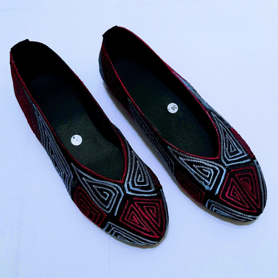 Detail etnik fashion sepatu wanita flat slip on bordir terbaru murah wajik abu dan abu fanta random