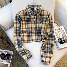 Detail EUNII Blouse Wanita Crop Top Kemeja Kotak Kotak Casual Atasan Lengan Panjang Terbaru Shirt Korean Style