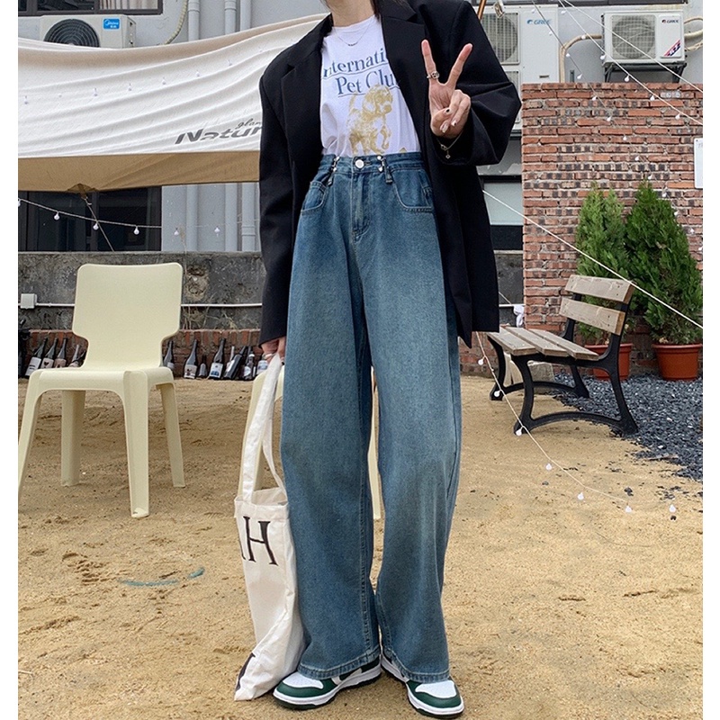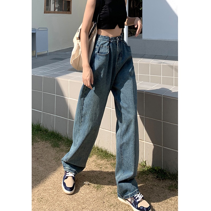 Detail EUNII Celana Jeans Wanita Boyfriend Celana Panjang Jeans Loose High Waist Korean style
