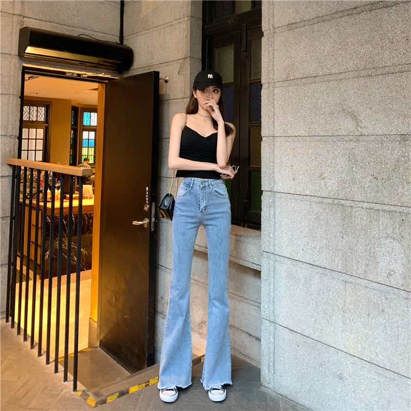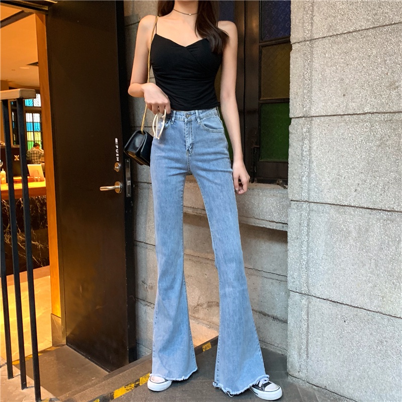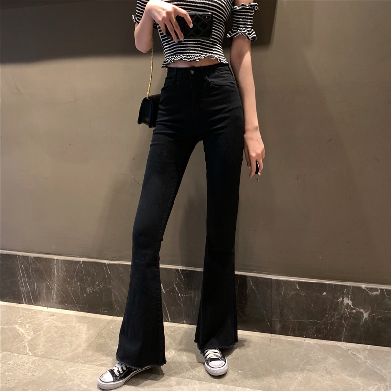 Detail EUNII Korean Style Celana Jeans Flare Stretch Wanita Highwaist Kasual Jeans