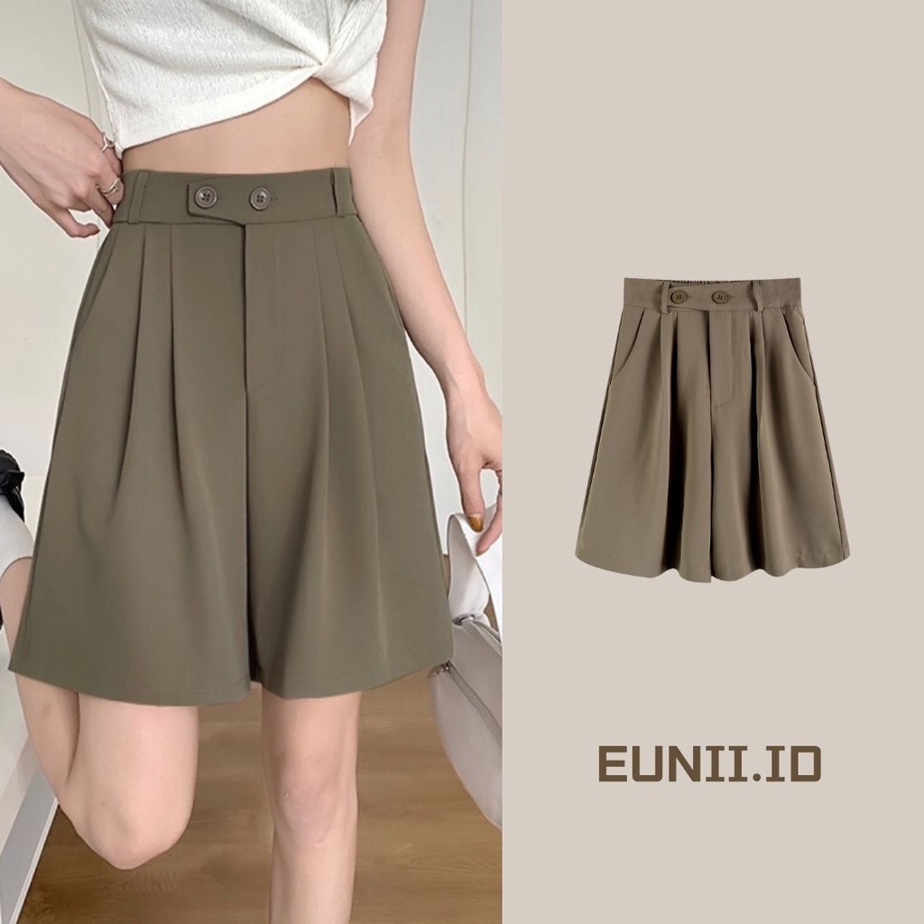Detail EUNII Korean Style Celana Pendek High Waist Wanita Selutut Shorts Santai