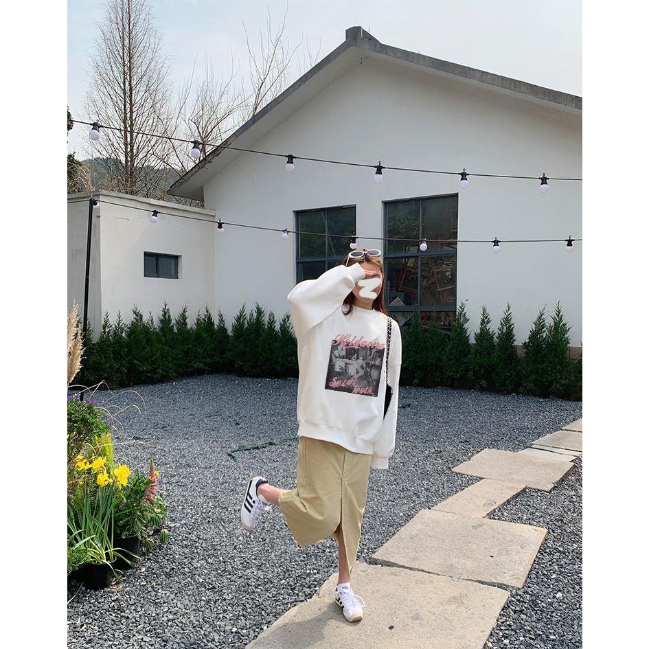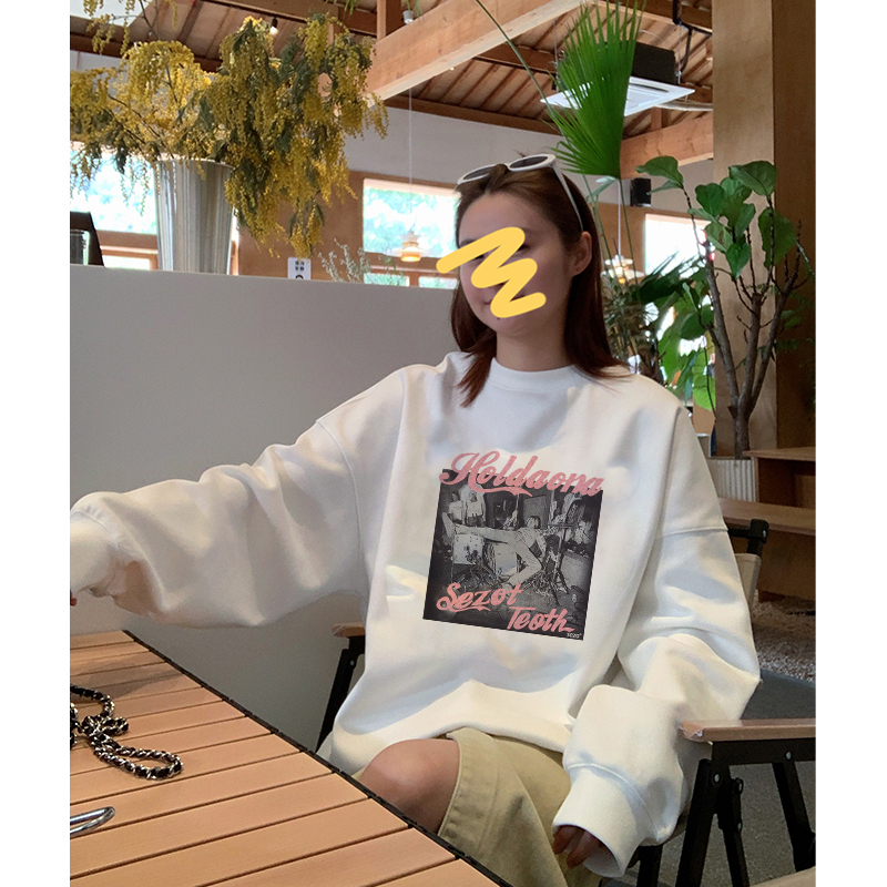 EUNII Sweater Lengan Panjang Vintage CD Painting Korean Style/Hoodie Oversize/Baju Wanita/Switer Wanita
