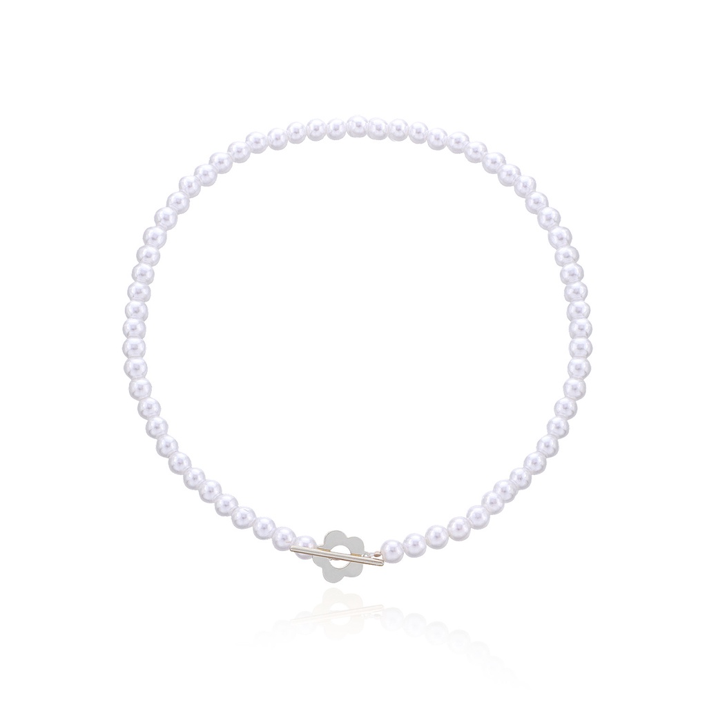 Aksesoris Fashion > Kalung > Kalung Lainnya > European and American Cross-border Jewelry Trend Simple Ins Short Pearl Clavicle Chain Temperament Fashion Flower OT Buckle Necklace