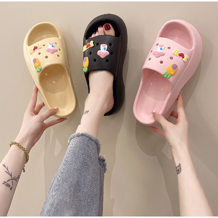 Detail EVA Sandal Slop Wanita Wedges Sendal Fuji Import Tebal 6 Cm Carrot Jabbitz Bahan Spons Super Ringan Empuk Elastis Non-Slip Sole Sandal Jelly Fuji Motif Bear Import/Sandal Wesges wanita Platfrom Tebal terbaru / Sendal rumah / Flas baim