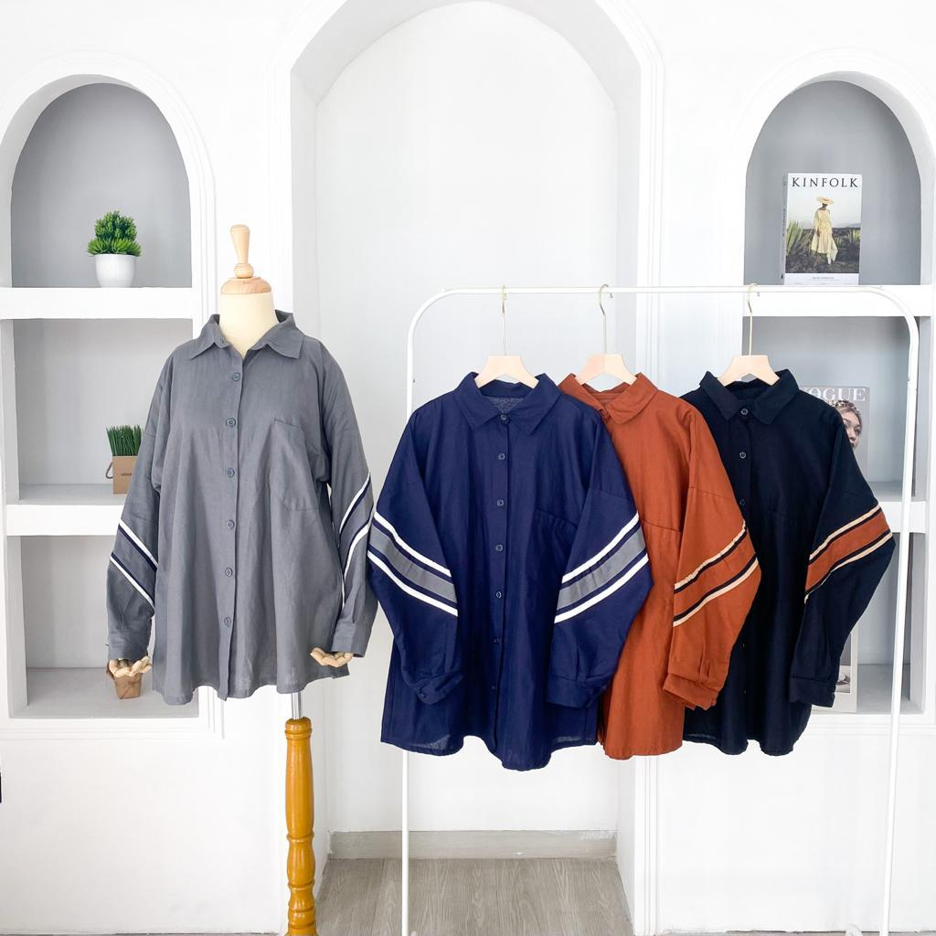 EVELIN SHIRT - FLOTTILICIOUS / baju kain linen / tangan panjang / atasan kancing busui / outfit kerja Katun Basic Kantor / Big size Cewek Brown / kemeja jumbo oversize