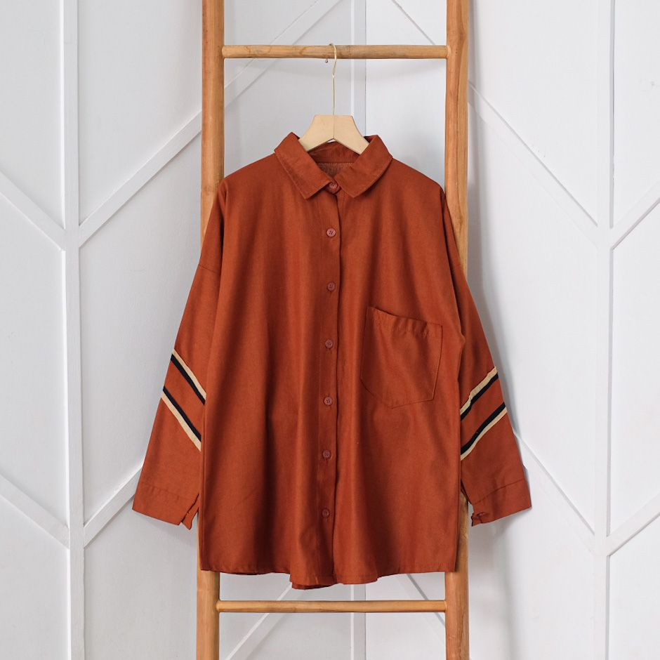 Detail EVELIN SHIRT - FLOTTILICIOUS / baju kain linen / tangan panjang / atasan kancing busui / outfit kerja Katun Basic Kantor / Big size Cewek Brown / kemeja jumbo oversize