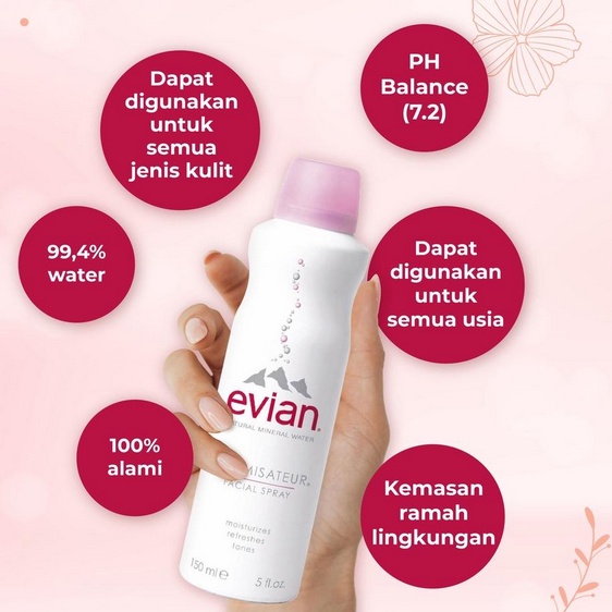 Natural Spring Water untuk memberi kesegaran dan menjaga kelembaban pada kulit sepanjang hari.