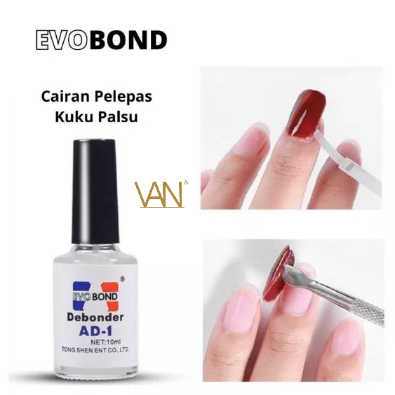 TIDAK BOLEH KENA KULIT DAN MATA Hanya untuk membersihkan alat eyelash dan melepaskan hiasan kuku atau membersihkan sisa lem kuku. Evobond debonder cairan khusus yang bisa membersihkan lem pada kuku, bulu mata palsu bisa juga digunakan untuk menghilangkan sisa - sisa lem pada alat eyelash extentio (seperti Pinset, Jade stone)