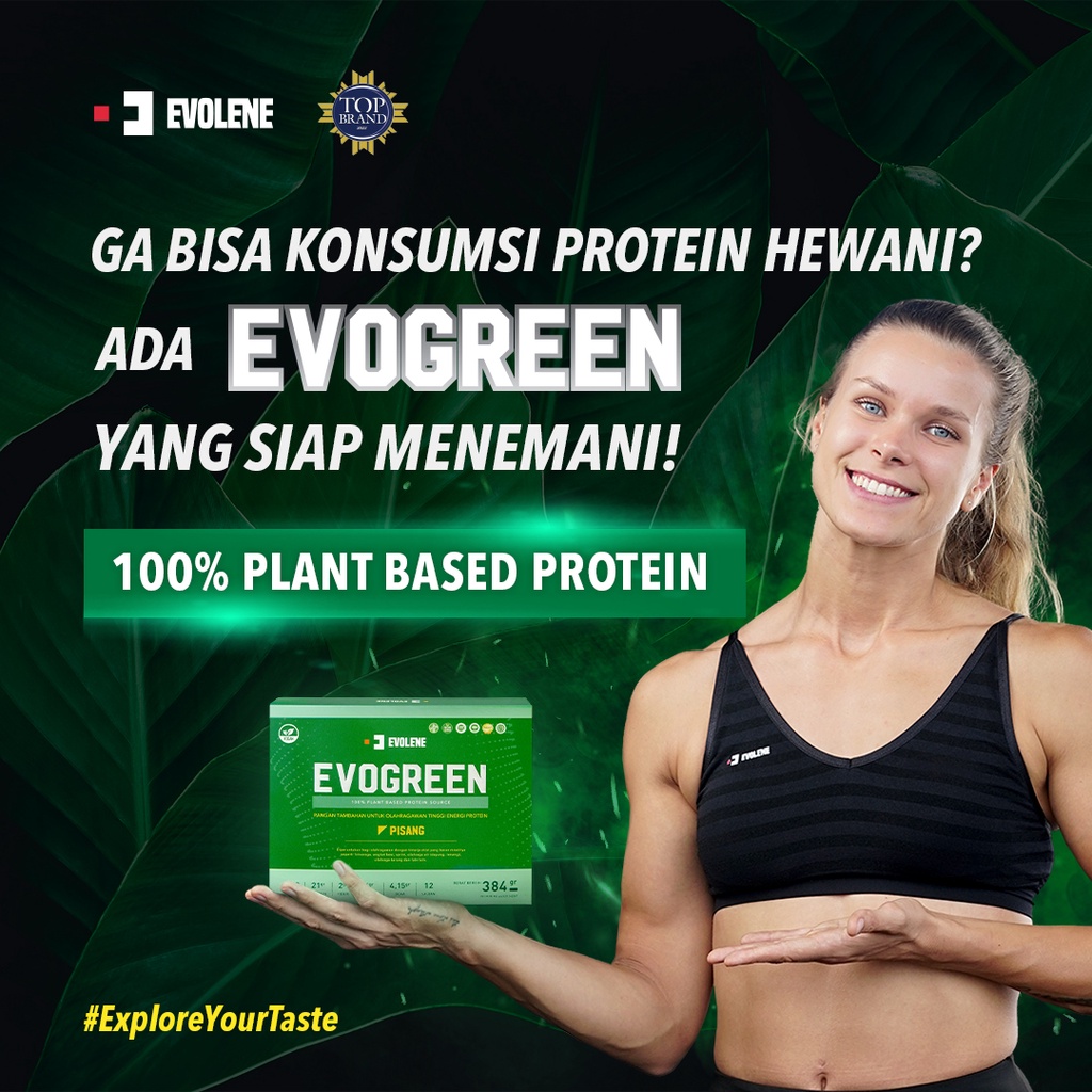 SOLUSI Untuk Yang Vegan ( Plant Based ) dan Alergi Lactose EVOLENE EVOGREEN - 21 Gram Protein - 133 Kalori Per Serving - 4.15 Gram BCAA - 4 Gram Glutamine ! - 0 gram Sugar ( Menggunakan pemanis Stevia )