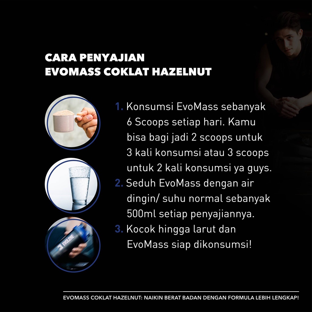 Solusi terbaik untuk meningkatkan berat badan anda adalah dengan mengkonsumsi suplemen Evomass Gainer Evolene dan rutin melakukan latihan fisik.