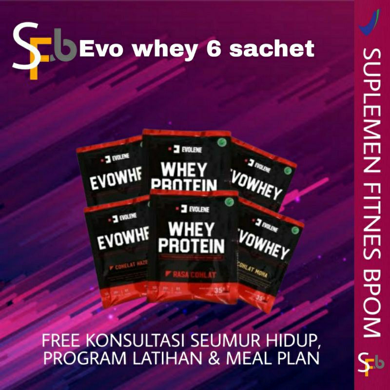 Kesehatan > Suplemen Makanan > Kebugaran > EVOLENE WHEY 6 SACHET SUPLEMEN SUSU FITNES FITNESS TINGGI PROTEIN GYM KESEHATAN MAKANAN