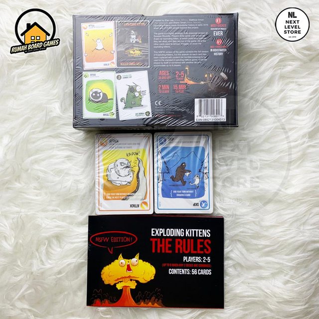 Basic Deck Untuk expansion deck nya bisa cek di-Etalase atau gunakan fitur chat untuk bantuan admin agar diberikan link untuk expansion-nya, kami menjual basic deck dan expansion pack lengkap khusus exploding kittens series (Basic Deck Ori, Basic Deck NSFW, Imploding Kittens, Streaking Kittens, Barking Kittens dan Exploding Kittens Party Pack)