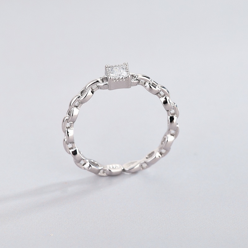 Detail Exquisite Square Crystal Silver Ring Cincin Charm Zircon Finger Rings Adjustable for Women Jewelry Gift