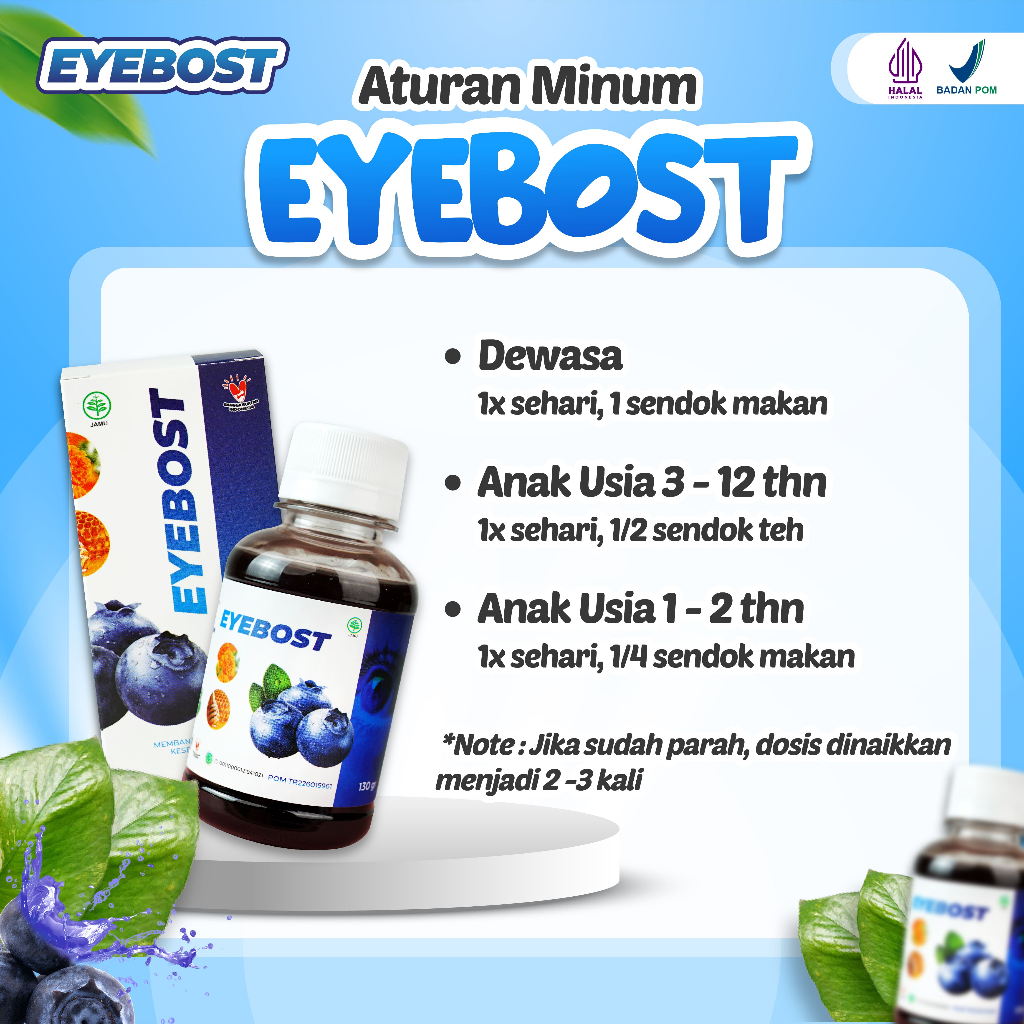 𝗞𝗲𝗹𝗲𝗯𝗶𝗵𝗮𝗻 𝗘𝘆𝗲𝗯𝗼𝘀𝘁 : ✔️ Sudah bersertifikat Halal MUI dan BPOM [ POM TR226015961 ] ✔️ Terbuat dari bahan alami sehingga aman dikonsumsi ✔️ 3x lebih ampuh atasi masalah mata ✔️ Diproses secara higienis sehingga terjamin kebersihan dan kualitasnya ✔️ Dijamin asli dan berkualitas