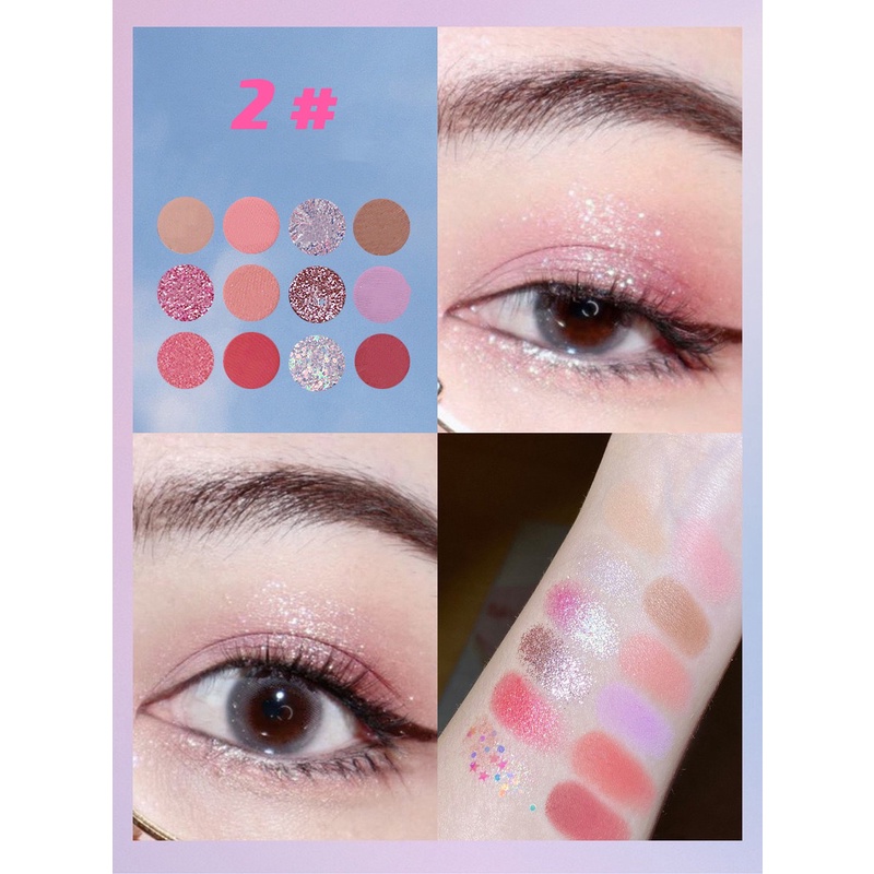 Eyeshadow dengan 12 warna palet warna cantik di setiap palet nya Dengan pilihan warna yg lengkap bikin mata terlihat cantik dan cute seketika ala KOREA
