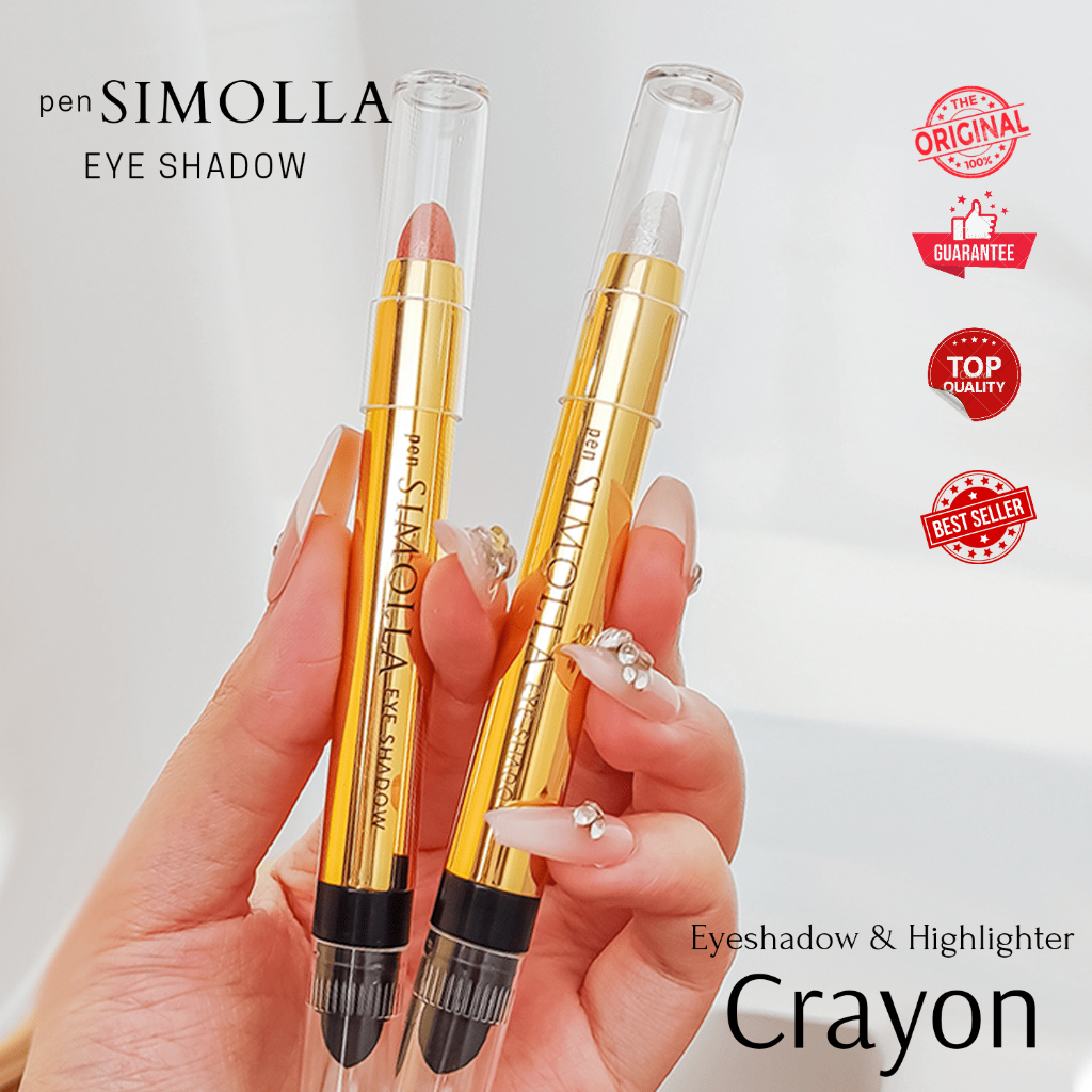 Eyeshadow Crayon by Simolla Pigmented color blink Terdiri dari 6 varian warna pigmented : #01 High Light White #02 Sugar Orange #03 Milk Tea Brown #04 Champagne Gold #05 Sweet Pink #06 Wooden Tea Brown