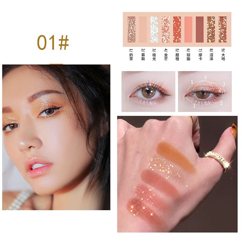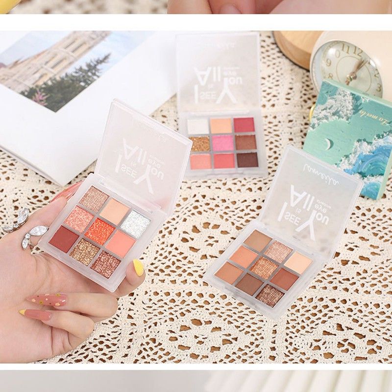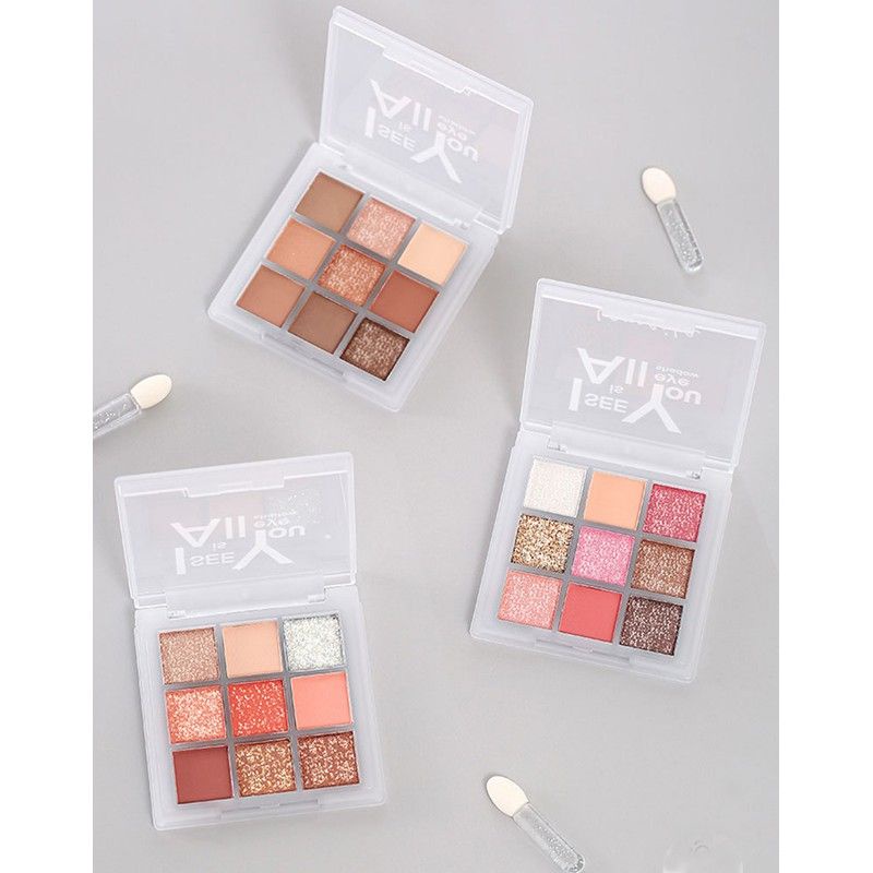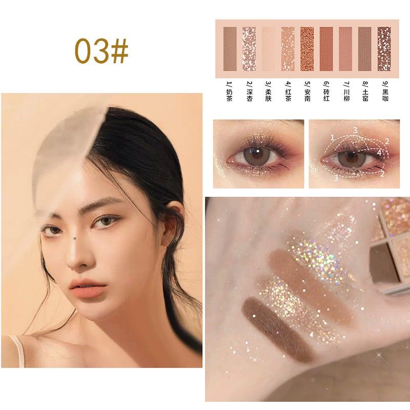 Eyeshadow pallete 9 warna perpaduan shimmer, matte dan glitter