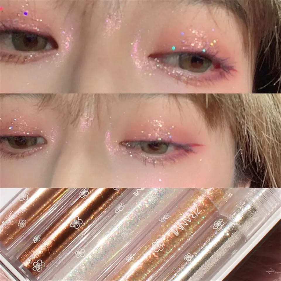 Ciri-ciri -Glitter, Sparkling Sequins, High-gloss, Monochrome, Flash Diamond - Dengan selimut bersinar, pena bayangan mata ini memiliki efek bersinar. -Produk ini cocok untuk kencan, liburan, perjalanan, belanja, penggunaan harian, sekolah dan sebagainya.