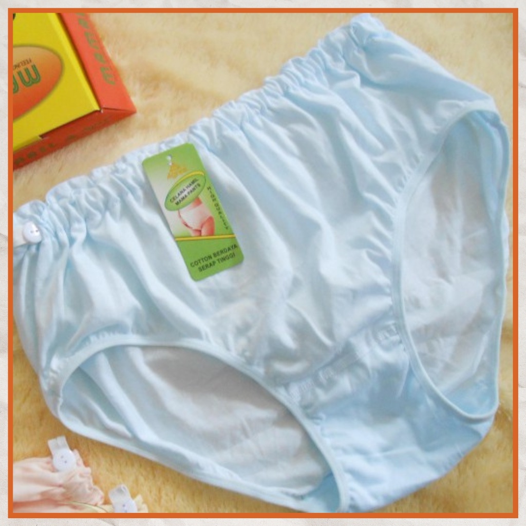 Celana dalam wanita hamil Merk Agree dari MAMABEL ORIGINAL Ready size XL & XXL Terbuat dari Cotton berdaya serap tinggi Cocok untuk wanita hamil dengan usia kandungan baru - melahirkan Terdapat detail kancing yang bisa digunakan untuk menyesuaikan ukuran perut