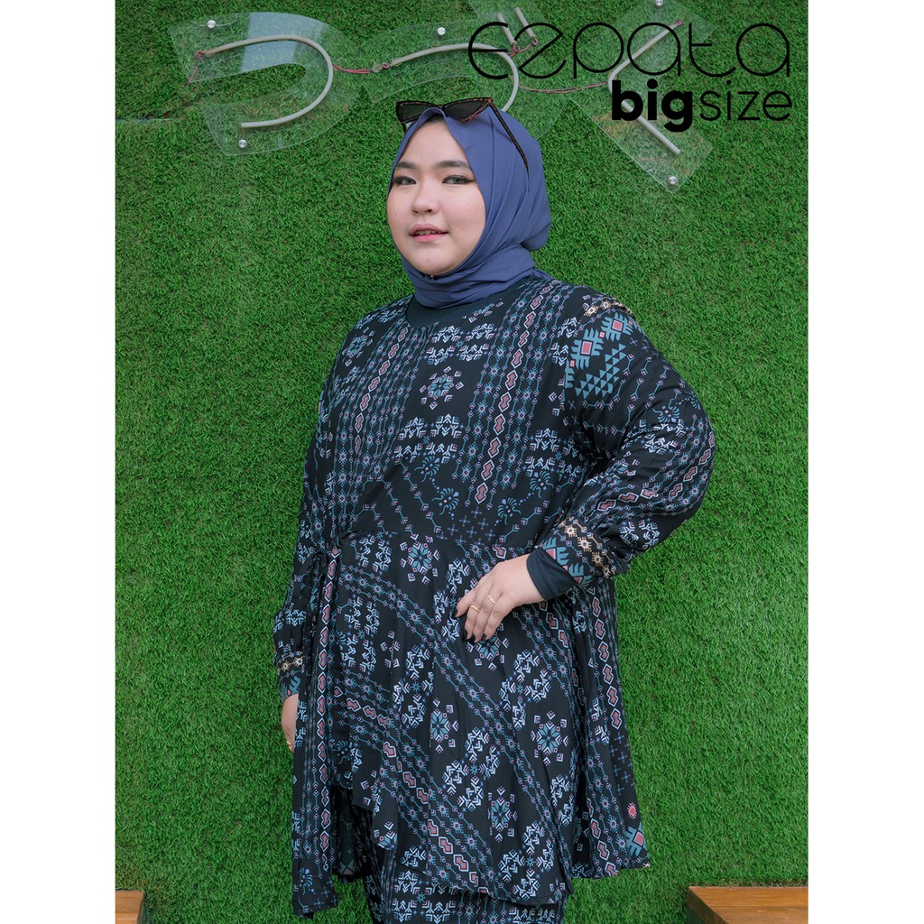 Detail Ezpata Setelan Daily Outfit Mazel Jumbo Bigsize Motif Etnik Pinggang Serut Resleting Depan Busui Friendly Lengan Kancing