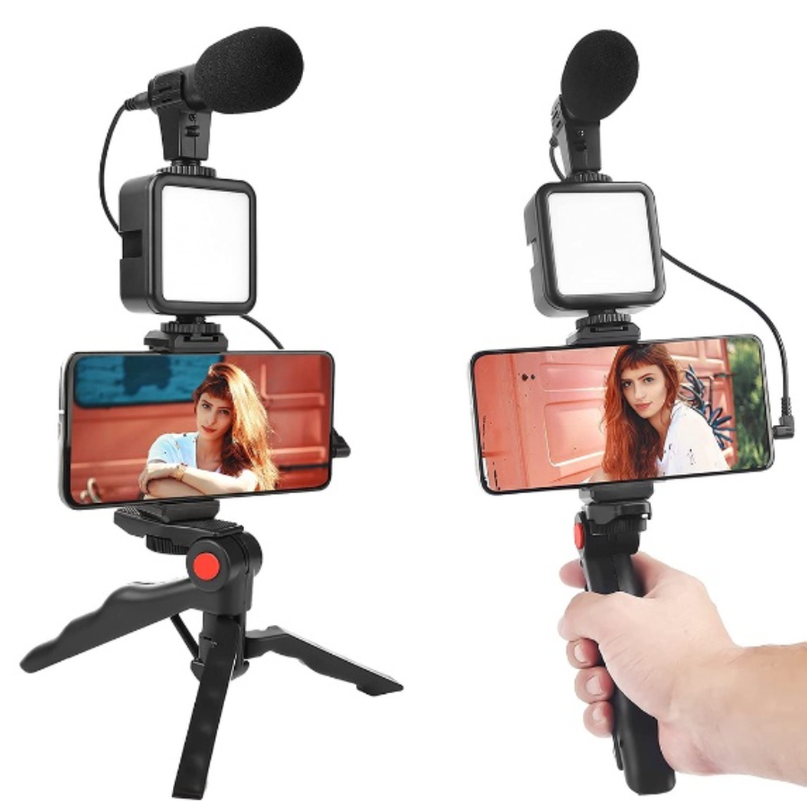 Vlogging Kit paket lengkap untuk para vlogger yang memiliki mobilitas menggunakan Smartphone , Dengan adanya Vlogging kit kapan pun dimanapun para vlogging bisa membuat Video dengan pencahayaan yg bagus serta sura yang lebih jernih.